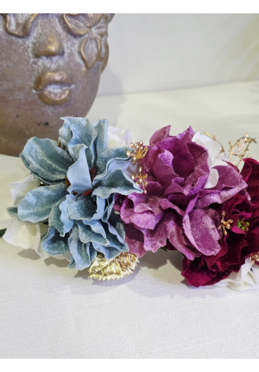 Ramillete con flores de terciopelo personalizado.