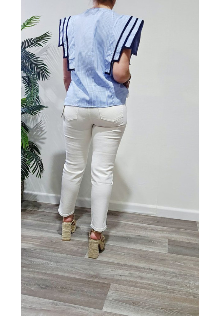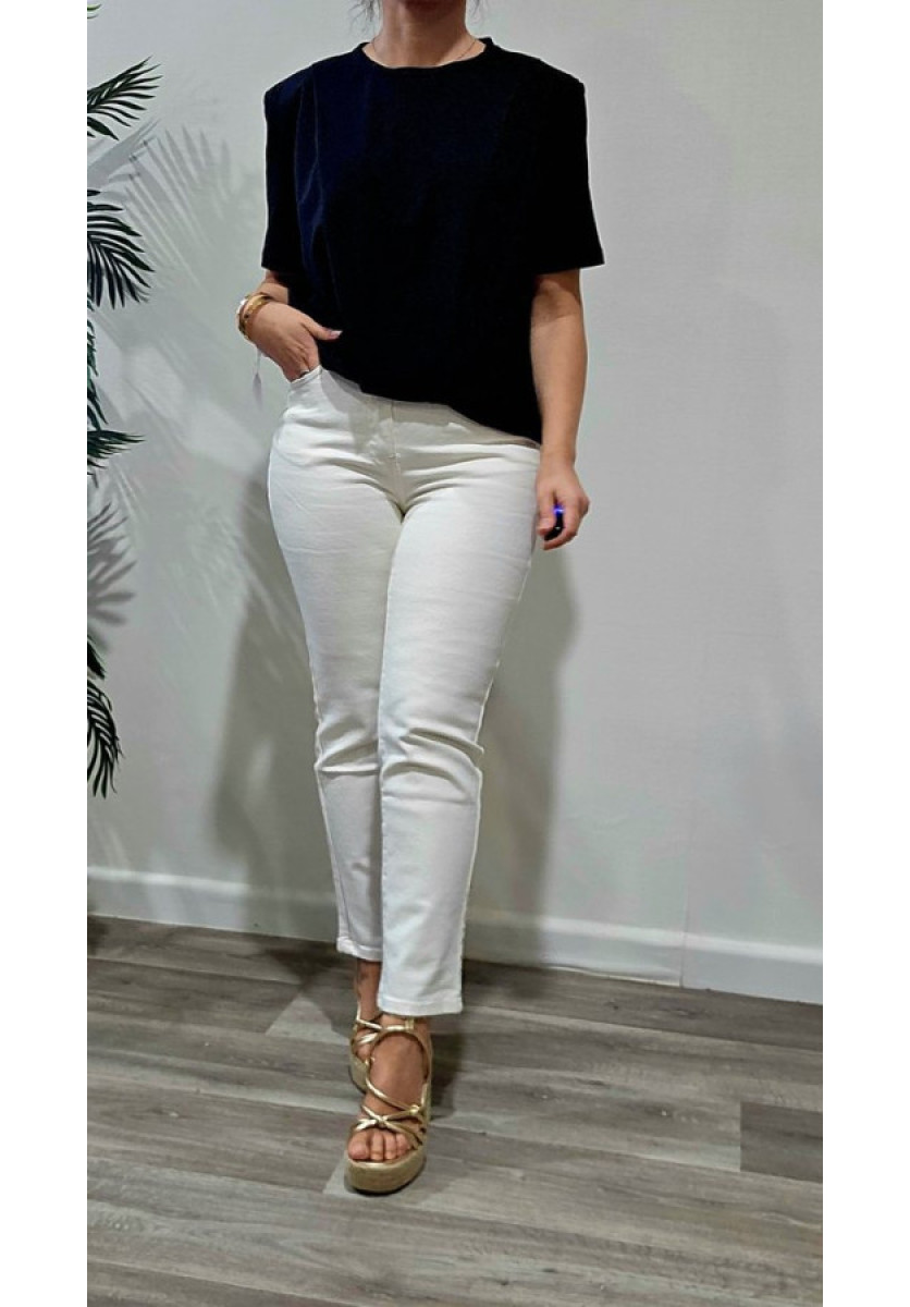 Pantalón vaquero mon fit en color crudo con cinco bolsillos.