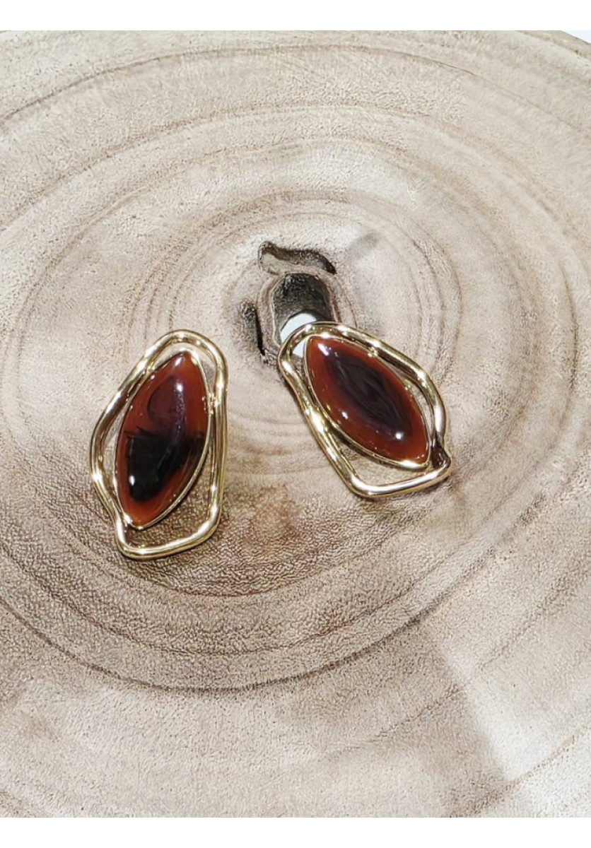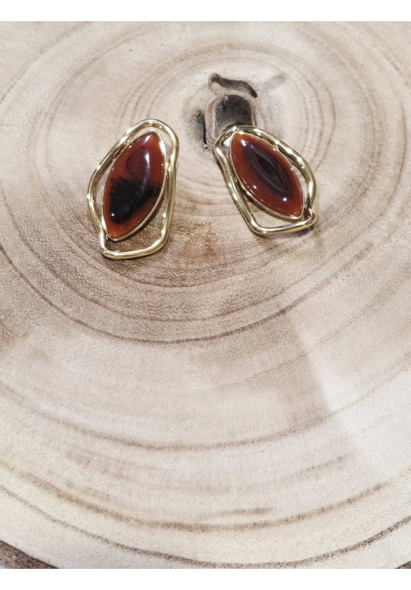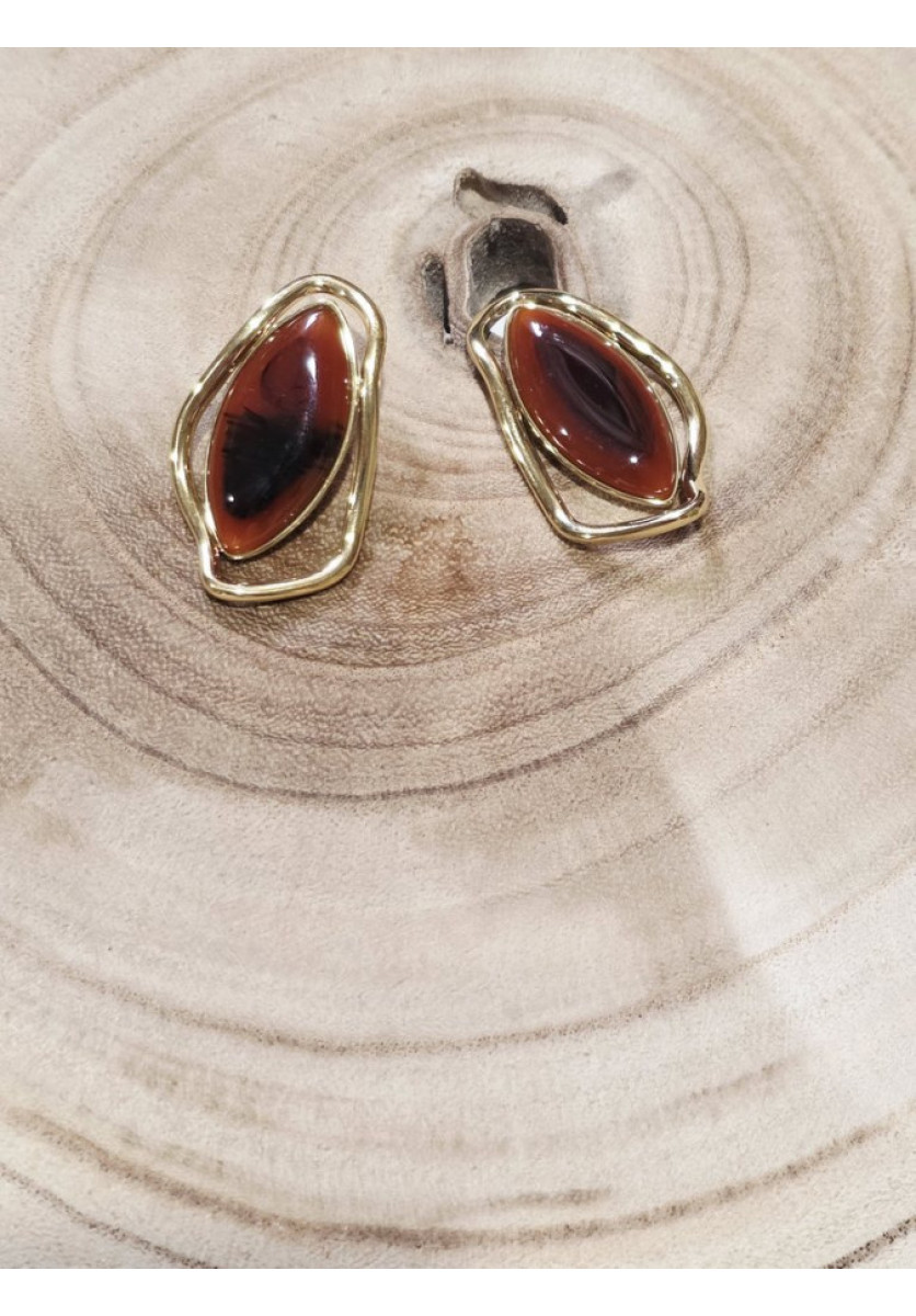 Pendiente dorado con óvalo nacarado.