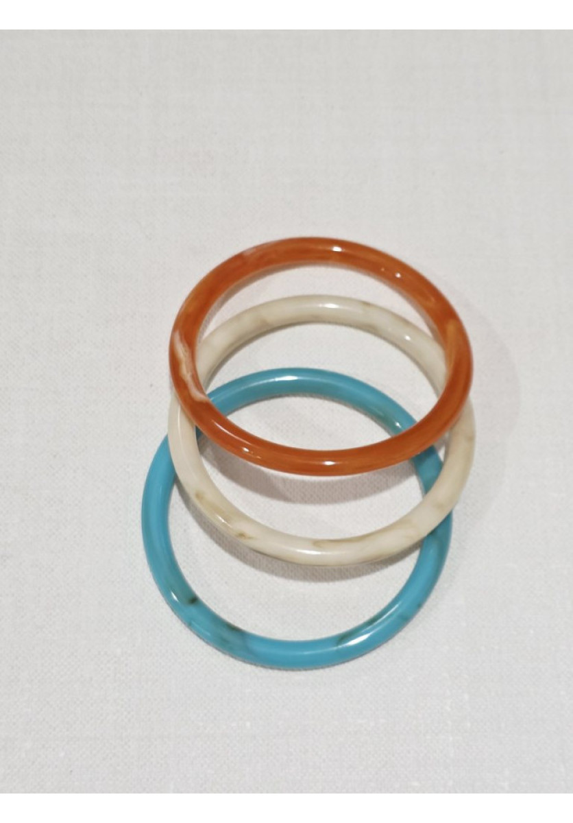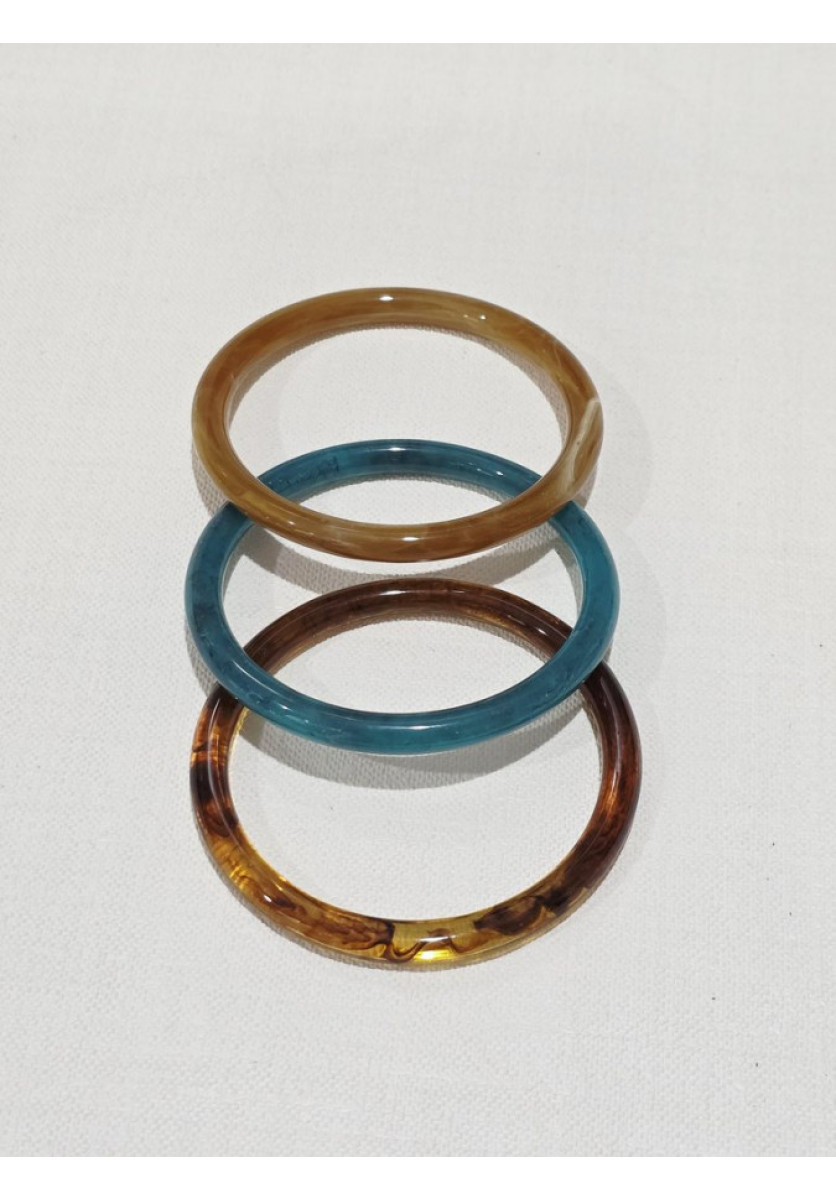 Pack de 3 pulseras rígidas de resina de tonos diferentes.