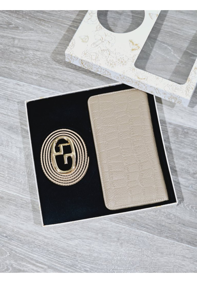 Caja de regalo compuesta por cartera y cinturón a juego.