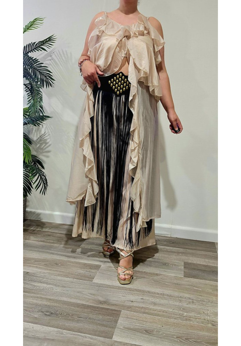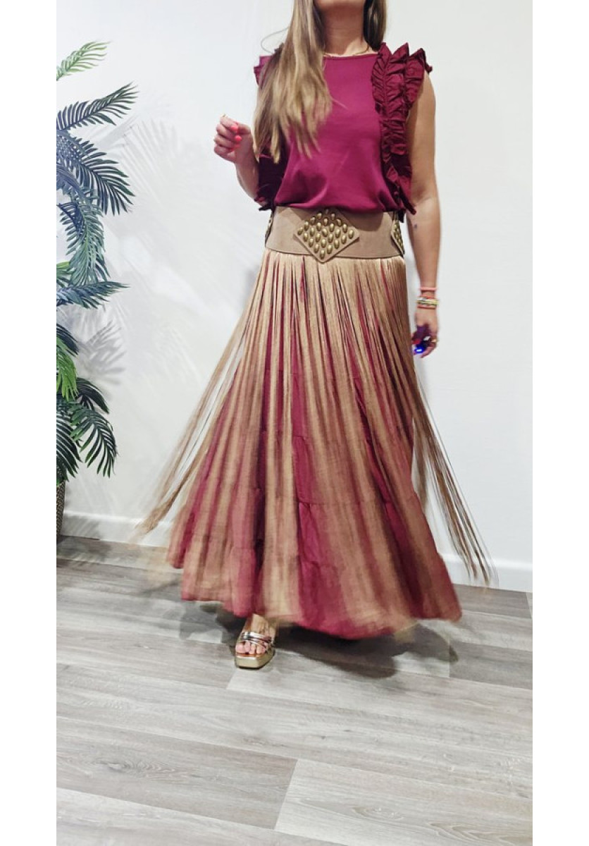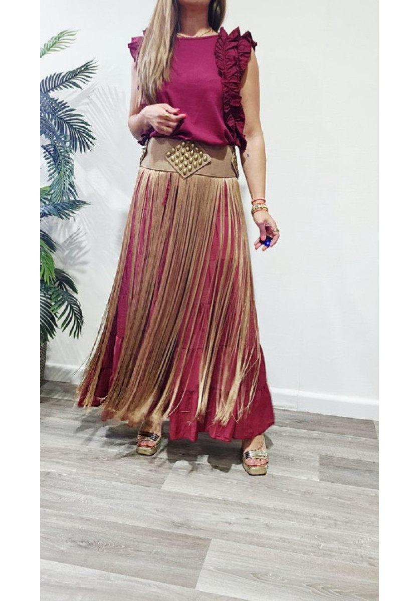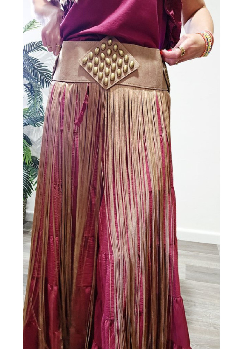 Cinturón piel con flecos.