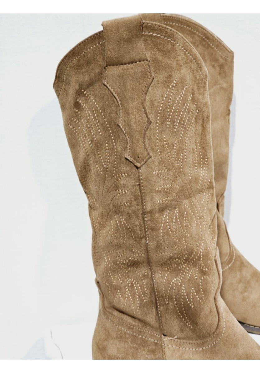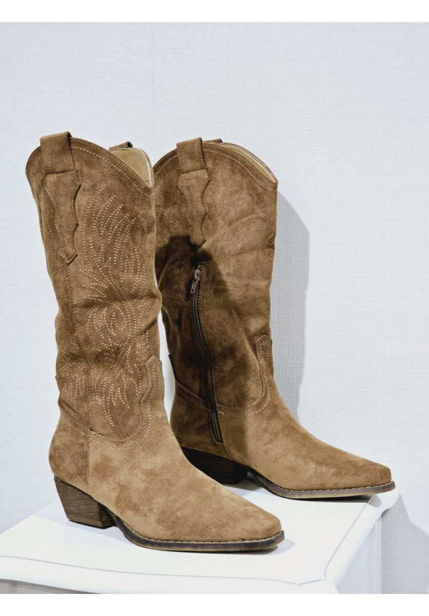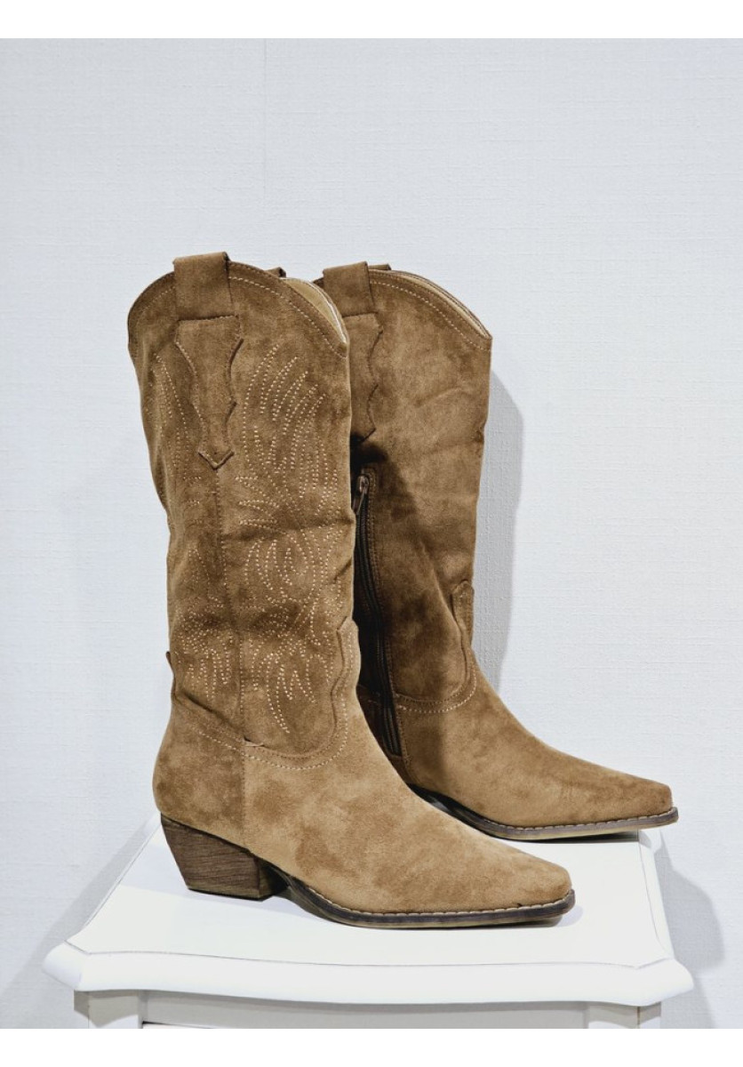 Bota Cowboy en camel. Cierre por cremallera interior.