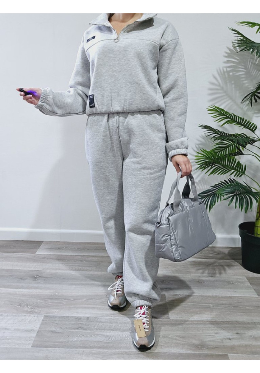 Chándal de sudadera corta con rizo en la cintura. Pantalón con cintura de elástico y bajo con puño. Tiene bolsillos. Talla única.