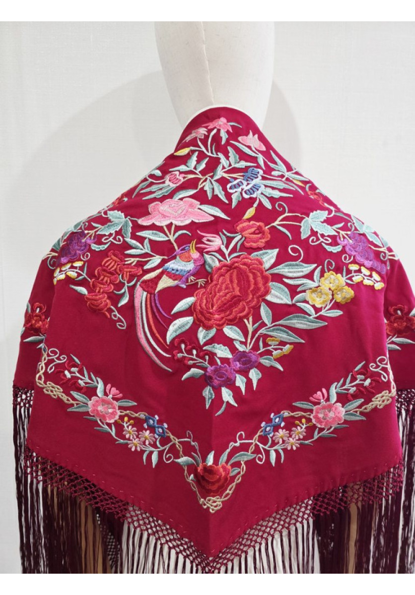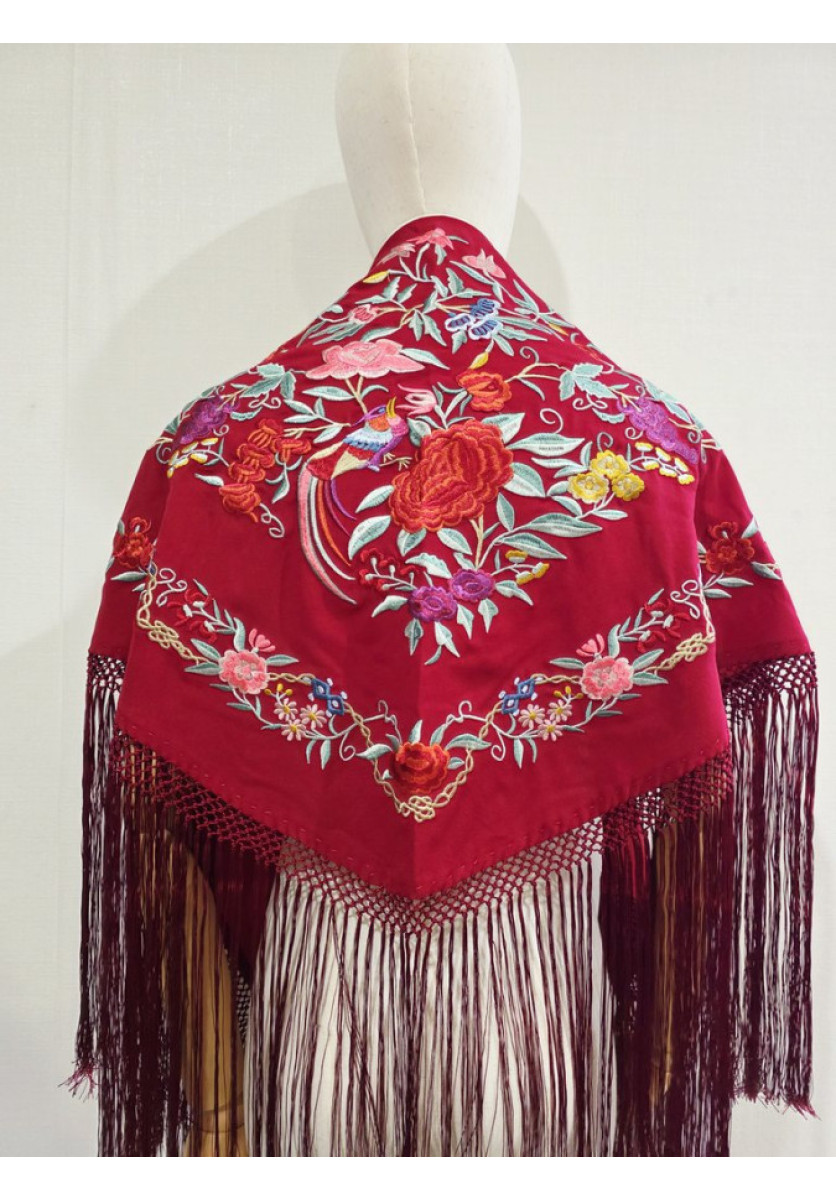 Mantón bordado de colores con flores grandes.