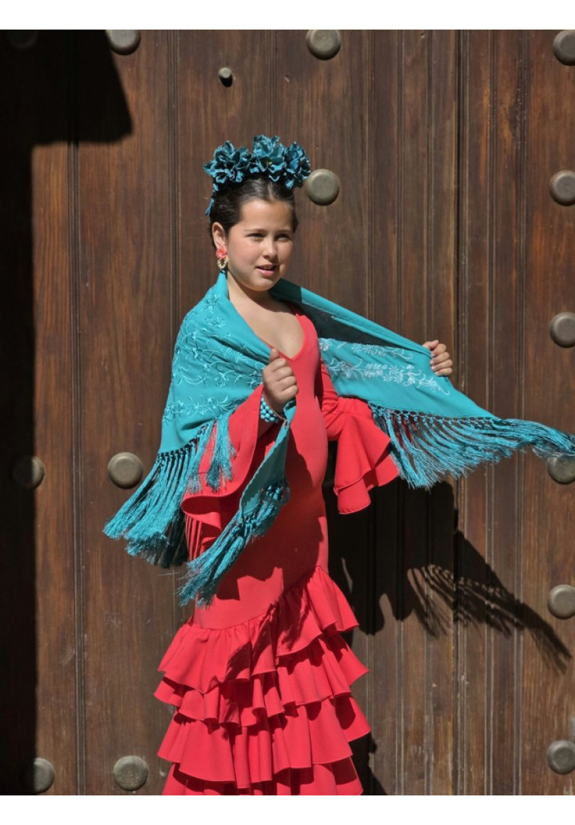 Mantón bordado del mismo tono.
