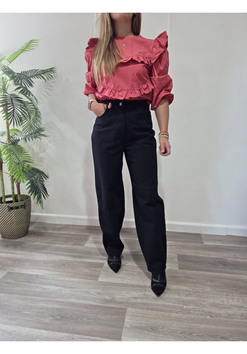 Blusa con volantitos por todo el cuerpo. Manga Francesa de globo.