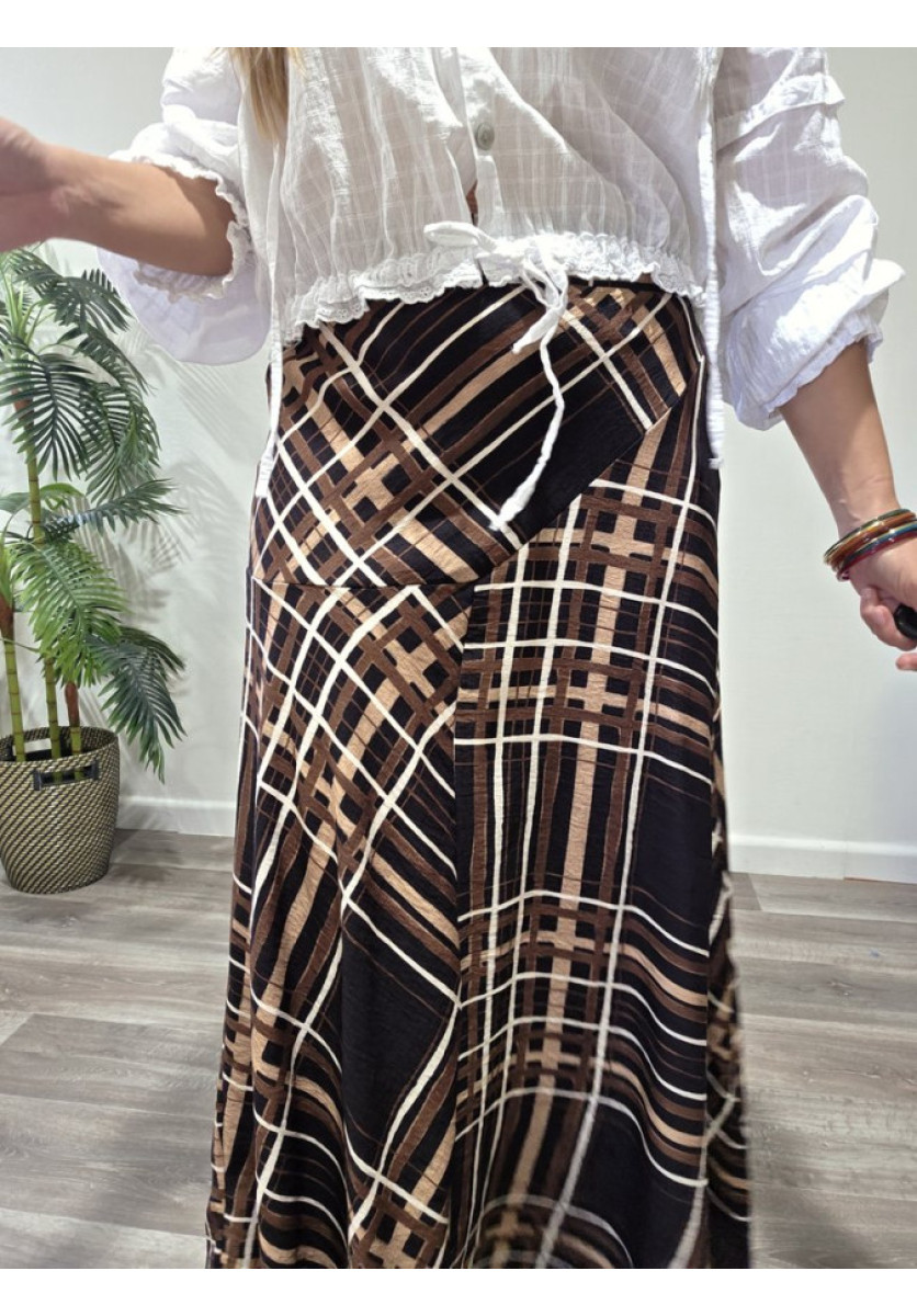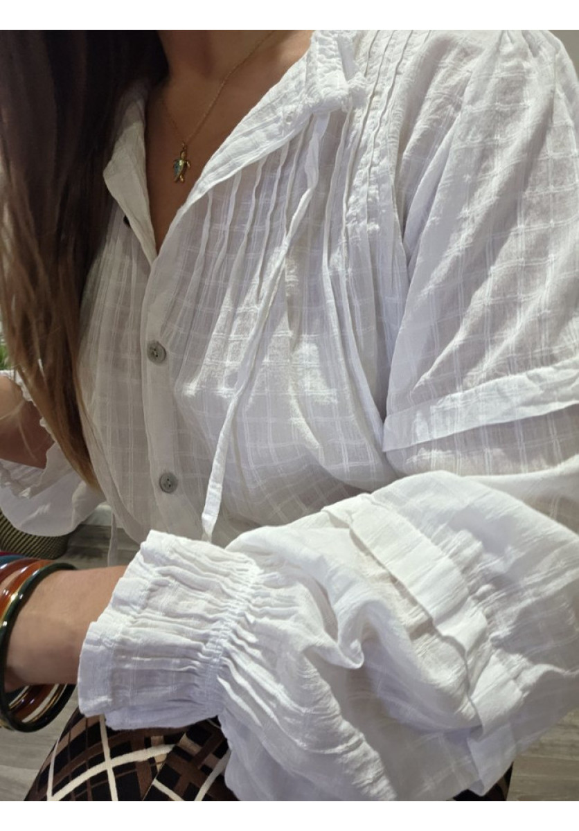 Blusa con tejido en relieve haciendo cuadrados con lazito en el cuello y cintura.