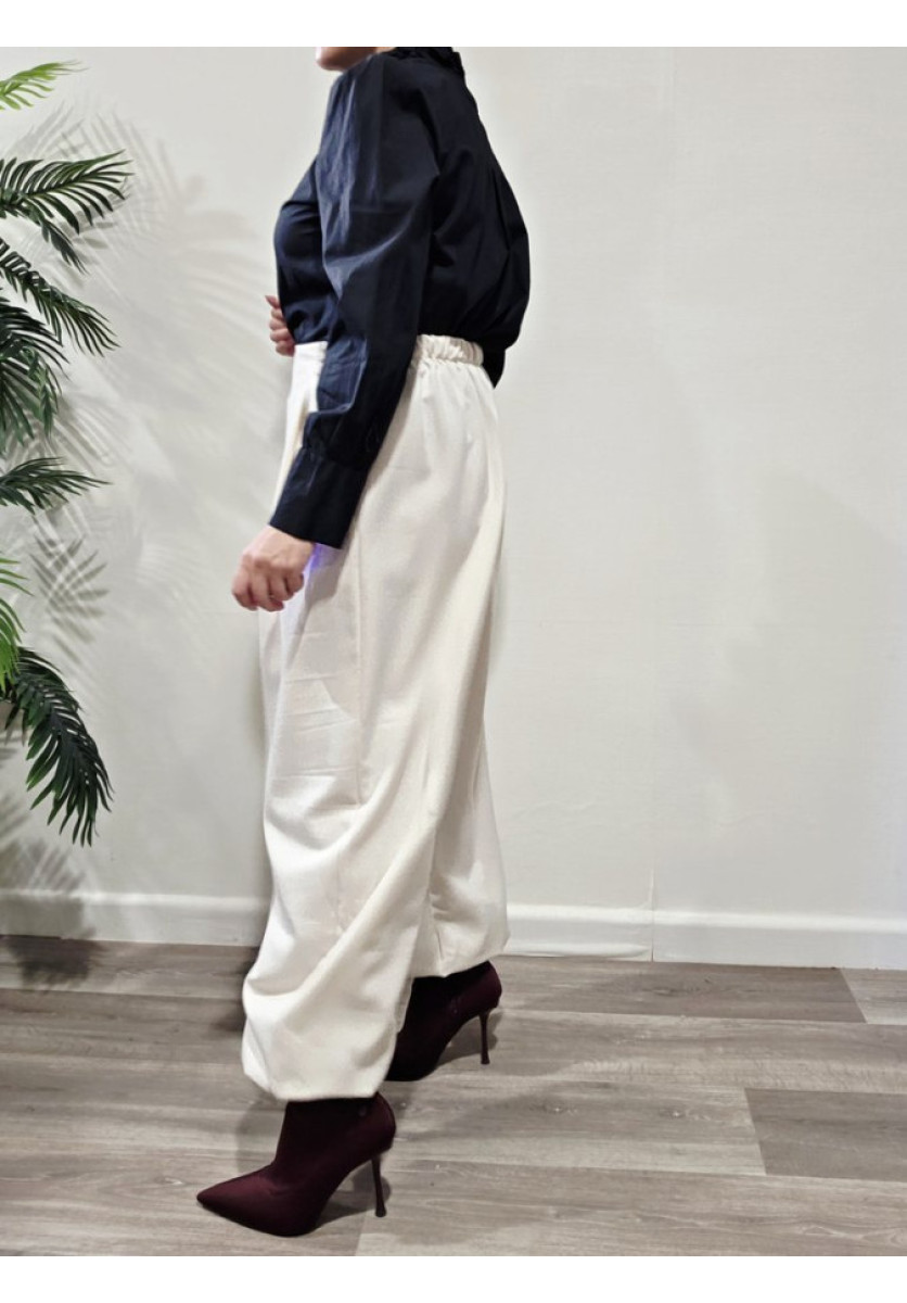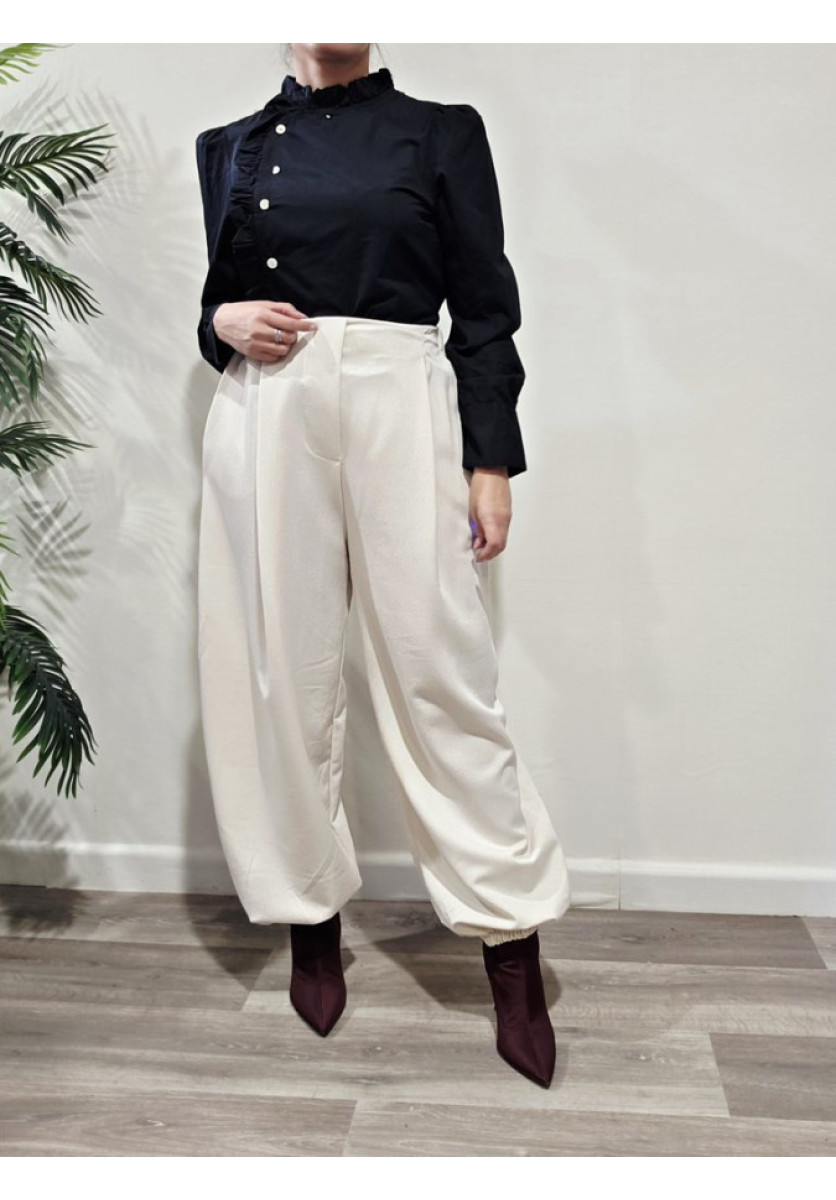 Blusa con cierre por botones lateral con rizo. Cuello mao. Manga larga.